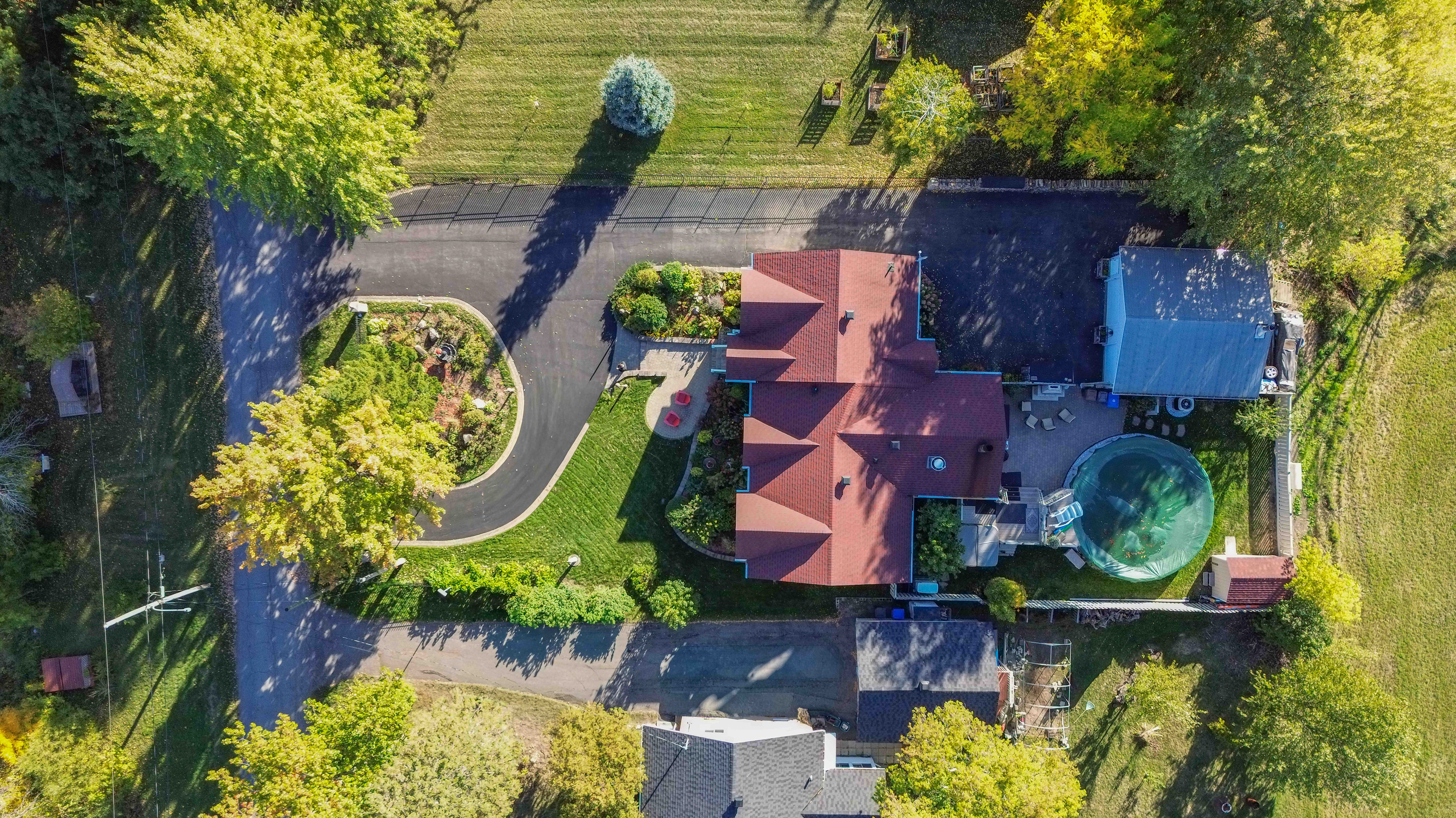 Aerial views capturing the property, surrounding landscape, and neighborhood perspective. Ideal for highlighting outdoor features, lot size, and location appeal.
